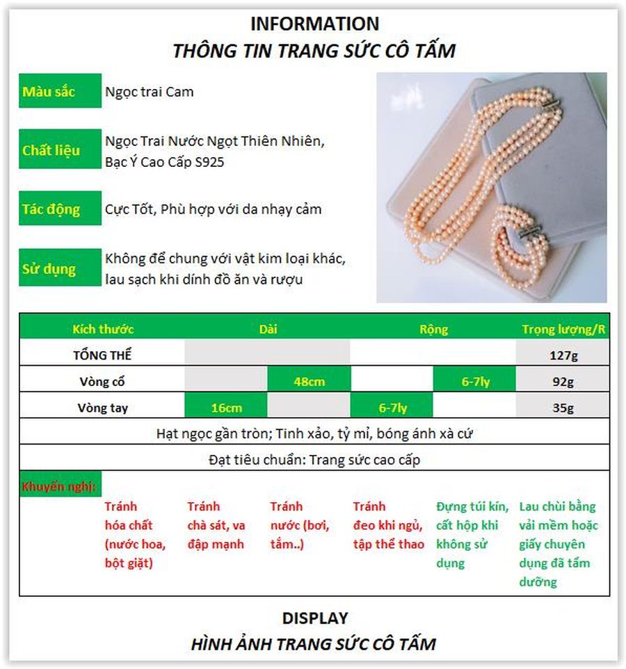Bộ sản phẩm gồm: Vòng cổ + Vòng tay |