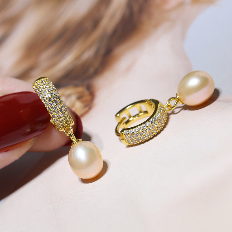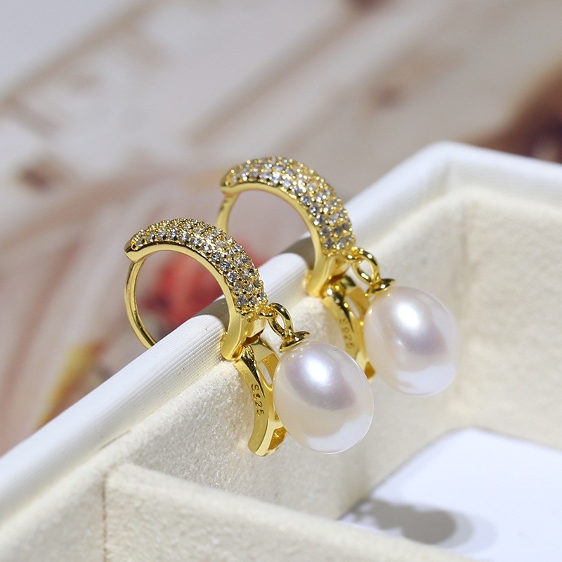 Bông khuyên tai ngọc trai Móc câu Sang trọng OVAL SHELL PEAL(9ly) - CTJ1103