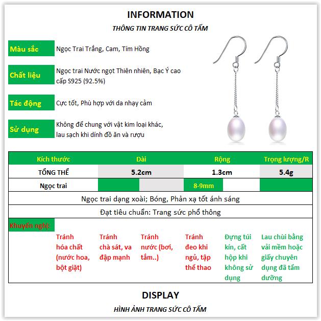 Chất liệu: Ngọc trai nước ngọt thiên nhiên, Bạc Ý cao cấp S925 (92,5%) |