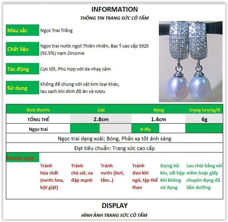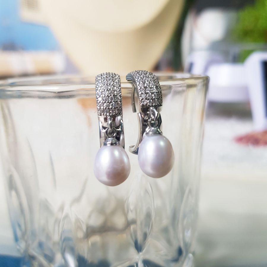 Chất liệu: Ngọc Trai nước ngọt thiên nhiên, Bạc Ý cao cấp S925 nạm Zirconia |