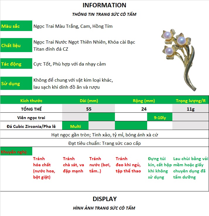Tất cả sản phẩm đều được kiểm định tại Tổng Hội Địa Chất Việt Nam theo lô về chất lượng Bạc Ta (99%), Bạc Ý S925 (92.5%), Vàng 10k, 14k, 18k, 24k và Ngọc Trai Thật. Đối với những sản phẩm trên 2 triệu sẽ có Giấy Kiểm Định đi kèm với sản phẩm.