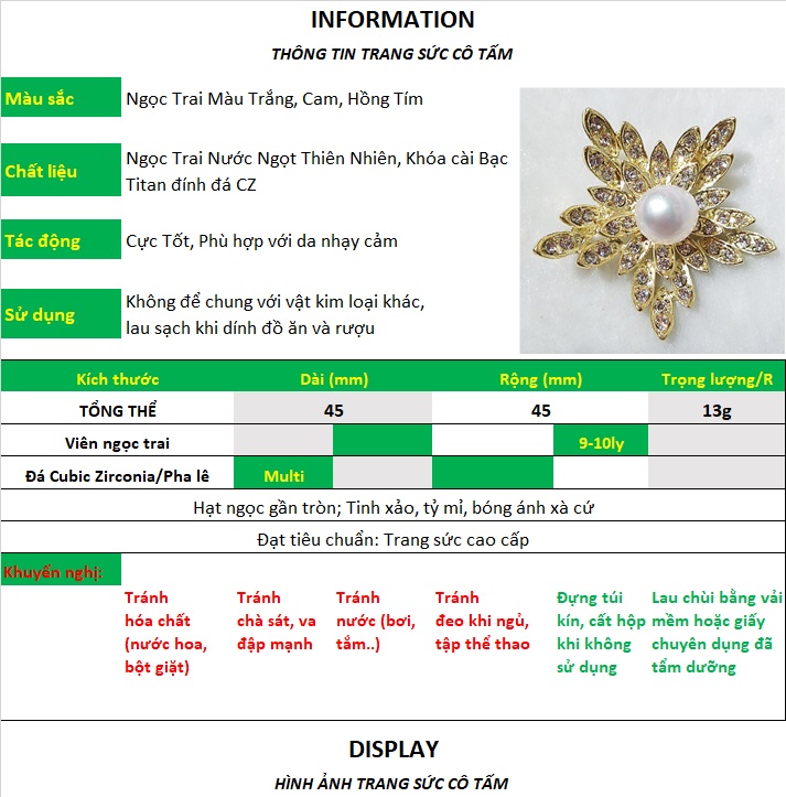 Tất cả sản phẩm đều được kiểm định tại Tổng Hội Địa Chất Việt Nam theo lô về chất lượng Bạc Ta (99%), Bạc Ý S925 (92.5%), Vàng 10k, 14k, 18k, 24k và Ngọc Trai Thật. Đối với những sản phẩm trên 2 triệu sẽ có Giấy Kiểm Định đi kèm với sản phẩm.