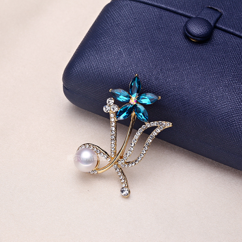 Cài áo ngọc trai Hoa vạn phúc 5 cánh xanh WRIGHTIA PEARL(9-10ly) - CTJ5102