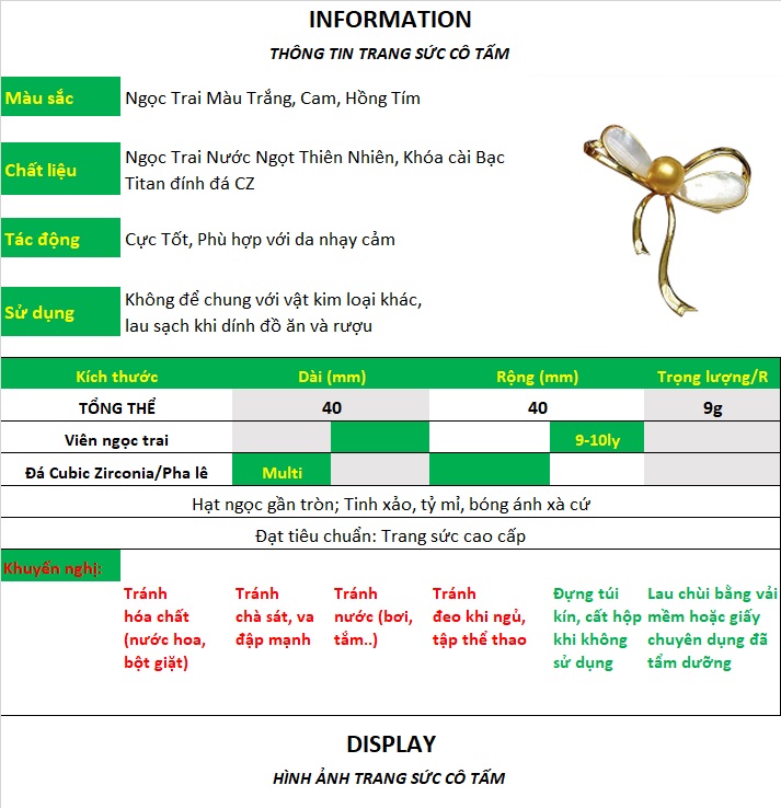 Tất cả sản phẩm đều được kiểm định tại Tổng Hội Địa Chất Việt Nam theo lô về chất lượng Bạc Ta (99%), Bạc Ý S925 (92.5%), Vàng 10k, 14k, 18k, 24k và Ngọc Trai Thật. Đối với những sản phẩm trên 2 triệu sẽ có Giấy Kiểm Định đi kèm với sản phẩm.