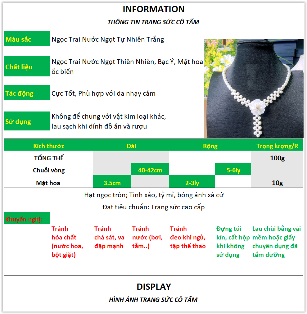 | CHÍNH SÁCH BẢO HÀNH: - Chỉ nhận đổi trả khi có phát sinh lỗi tại thời điểm nhận hàng, - Bảo hành TRỌN ĐỜI về chất liệu VÀNG 18K, BẠC S925 và NGỌC TRAI THẬT, nếu không đúng như cam kết Trang Sức Cô Tấm sẽ bồi hoàn gấp 10 lần giá trị sản phẩm. - Bảo hành làm sáng, đánh bóng, làm mới trang sức miễn phí sản phẩm. - Phân phối bán buôn bán lẻ trên toàn quốc, lấy sỉ số lượng lớn vui lòng liên hệ trực tiếp. CAM KẾT MUA HÀNG: Thiết kế sang trọng, phong cách riêng biệt của riêng CÔ TẤM thiết kế Cam kết sản phẩm đúng như hình 100%, hình ảnh sắt nét, chi tiết, rõ ràng. Bồi thường gấp 10 nếu sản phẩm không đúng như đã cam kết. Có một số hình ảnh được room lên để KH quan sát rõ từng chi tiết Vận chuyển giao hàng trên toàn quốc Hàng luôn có sẵn, khách hàng có nhiều sự lựa chọn. Sản phẩm được chụp từ nhiều góc độ khác nhau, mang đến chân thật nhất về sản phẩm. Dùng giấy hoặc vải mềm hay hộp đựng trang sức chuyên dụng để bảo quản khi bạn không có nhu cầu đeo nữa (lưu ý nên làm sạch trước khi cất giữ). Tất cả sản phẩm đều được kiểm định tại Tổng Hội Địa Chất Việt Nam theo lô về chất lượng bạc ý S925, vàng 18k và ngọc trai thật. Đối với những sản phẩm trên 2 triệu sẽ có giấy kiểm định đi kèm với sản phẩm. Bảo hành bằng thẻ hoặc hoá đơn mua hàng. |