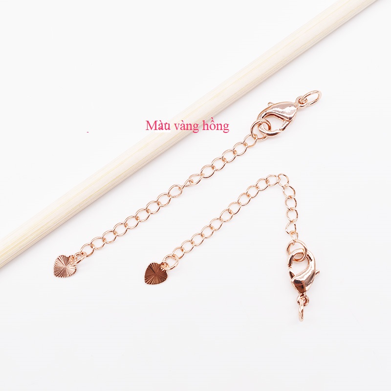 Màu sắc: Bạc, Vàng, Hồng Độ dài:12mm khóa móc Chất liệu: Đồng mạ bạc S925 Giữ màu sáng, bền, chi tiết sắc nét Dây mở rộng 5cm
