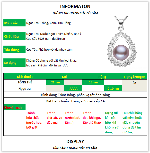 | CAM KẾT CHẤT LƯỢNG: Cam kết sản phẩm đúng như hình 100%, hình ảnh sắt nét, chi tiết, rõ ràng. Có một số hình ảnh được ZOOM lên để quý khách quan sát rõ từng chi tiết. Sản phẩm được chụp từ nhiều góc độ khác nhau, mang đến hình ảnh chân thật nhất về sản phẩm. Một số sản phẩm thường kèm vải dưỡng, hộp đựng chuyên dụng để bảo quản khi bạn không sử dụng Tất cả sản phẩm đều được kiểm định tại Tổng Hội Địa Chất Việt Nam theo lô về chất lượng Bạc Ta (99%), Bạc Ý S925 (92.5%), Vàng 10k, 14k, 18k, 24k và Ngọc Trai Thật. Đối với những sản phẩm trên 2 triệu sẽ có Giấy Kiểm Định đi kèm với sản phẩm. |