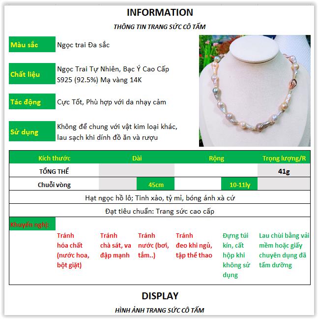 Chất liệu: Ngọc Trai Baroque Tự Nhiên , Khóa Bạc Ý Cao Cấp S925 (92,5%) |