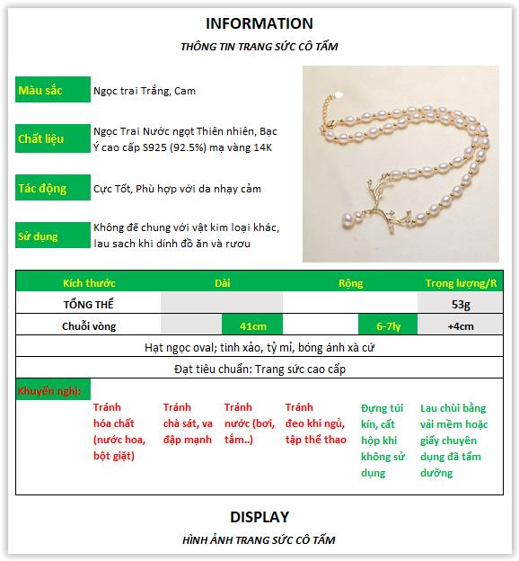 Chất liệu: Ngọc trai nước ngọt thiên nhiên, Bạc Ý cao cấp S925 (92,5%) mạ vàng 14K |