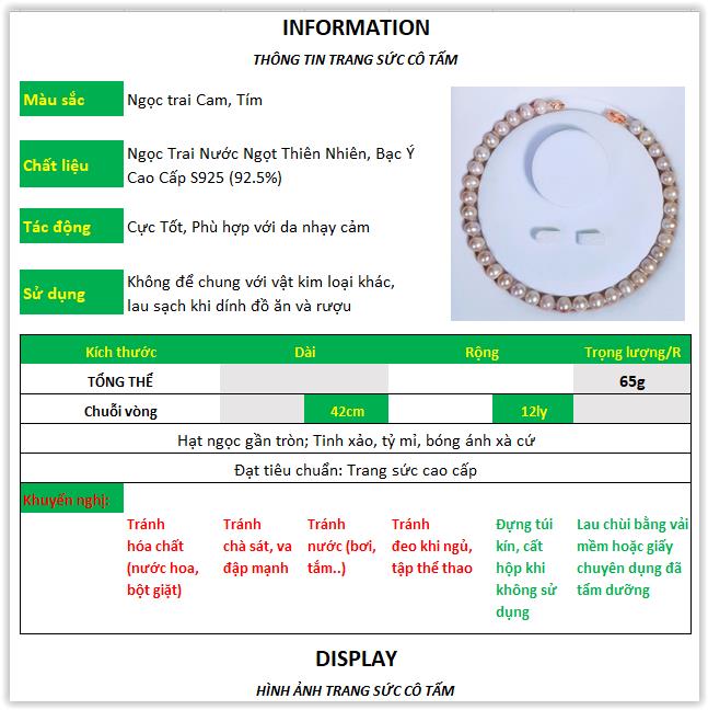 Chất liệu: Ngọc Trai Nước Ngọt Thiên Nhiên, Khóa Bạc Ý Cao Cấp S925 (92,5%) |