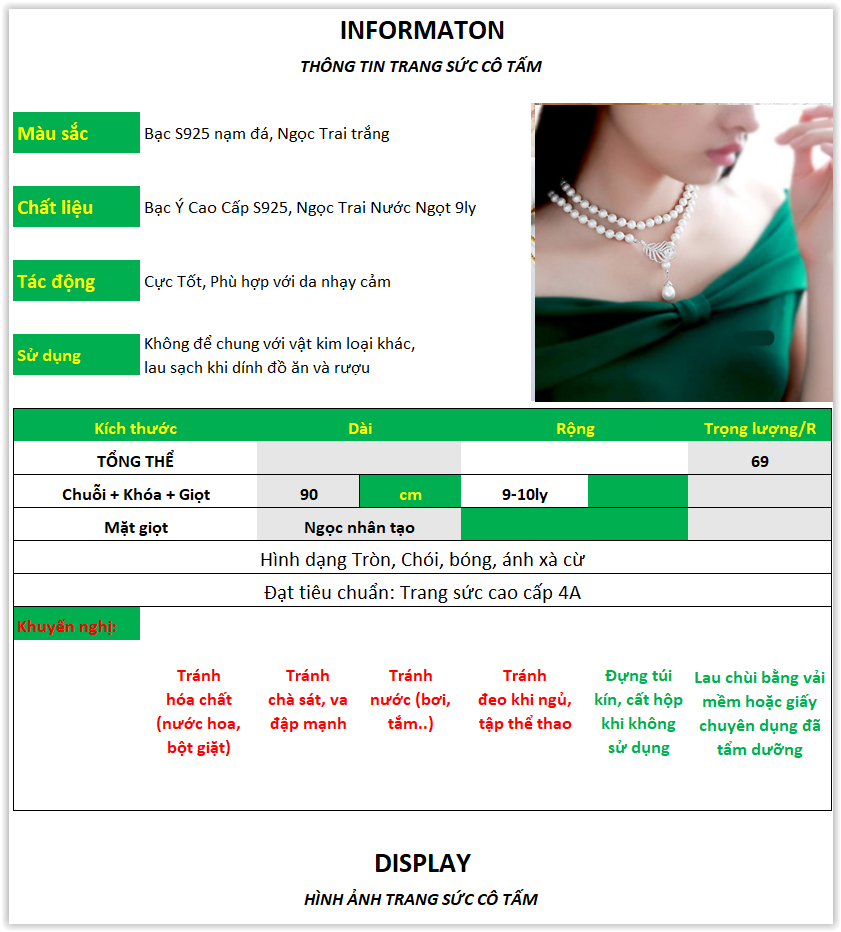Chất liệu: Ngọc Trai Nước Ngọt Tự Nhiên 8-10 ly, Khóa Bạc Ý Cao Cấp S925 (92,5%) Kích thước: 90cm+5 Màu sắc: Trắng