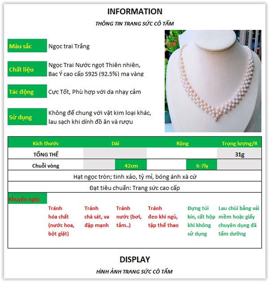 | CAM KẾT CHẤT LƯỢNG: Cam kết sản phẩm đúng như hình 100%, hình ảnh sắt nét, chi tiết, rõ ràng. Có một số hình ảnh được ZOOM lên để quý khách quan sát rõ từng chi tiết. Sản phẩm được chụp từ nhiều góc độ khác nhau, mang đến hình ảnh chân thật nhất về sản phẩm. Một số sản phẩm thường kèm vải dưỡng, hộp đựng chuyên dụng để bảo quản khi bạn không sử dụng. Tất cả sản phẩm đều được kiểm định tại Tổng Hội Địa Chất Việt Nam theo lô về chất lượng Bạc Ta (99%), Bạc Ý S925 (92.5%), Vàng 10k, 14k, 18k, 24k và Ngọc Trai Thật. Đối với những sản phẩm trên 2 triệu sẽ có Giấy Kiểm Định đi kèm với sản phẩm. |
