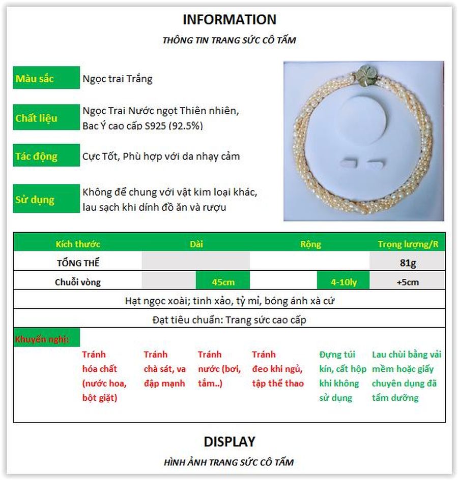 | CAM KẾT CHẤT LƯỢNG: Cam kết sản phẩm đúng như hình 100%, hình ảnh sắt nét, chi tiết, rõ ràng. Có một số hình ảnh được ZOOM lên để quý khách quan sát rõ từng chi tiết. Sản phẩm được chụp từ nhiều góc độ khác nhau, mang đến hình ảnh chân thật nhất về sản phẩm. Một số sản phẩm thường kèm vải dưỡng, hộp đựng chuyên dụng để bảo quản khi bạn không sử dụng. Tất cả sản phẩm đều được kiểm định tại Tổng Hội Địa Chất Việt Nam theo lô về chất lượng Bạc Ta (99%), Bạc Ý S925 (92.5%), Vàng 10k, 14k, 18k, 24k và Ngọc Trai Thật. Đối với những sản phẩm trên 2 triệu sẽ có Giấy Kiểm Định đi kèm với sản phẩm. |