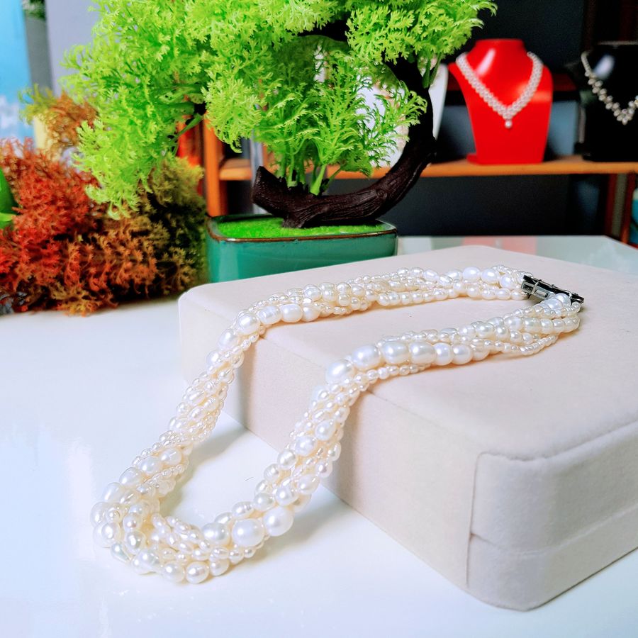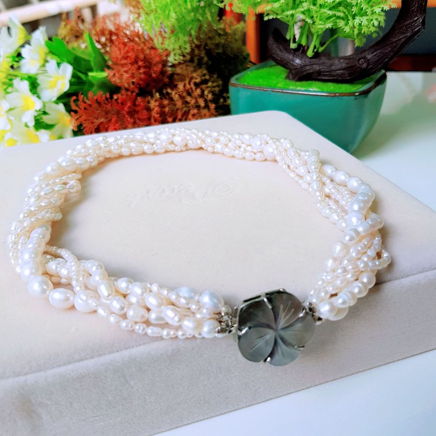 Chất liệu: Ngọc Trai Nước Ngọt Thiên Nhiên, Khóa Hoa Đào Khắc Vỏ Trai Tự Nhiên |