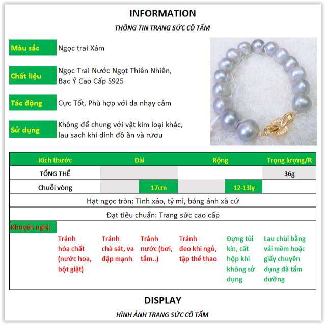 Chất liệu: Ngọc Trai Nước Ngọt Thiên Nhiên, Khóa Bạc Ý Cao Cấp S925 (92,5%) Mạ Vàng 7K |