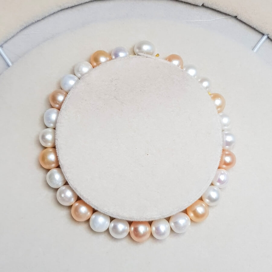 Mẫu được tạo Mix 17 viên ngọc trai Trắng 7-8ly kết hợp 9 viên ngọc trai Vàng-Đen-Tím-Hồng quý hiếm 8-9ly (Biểu trưng quyền lực nữ giới) |